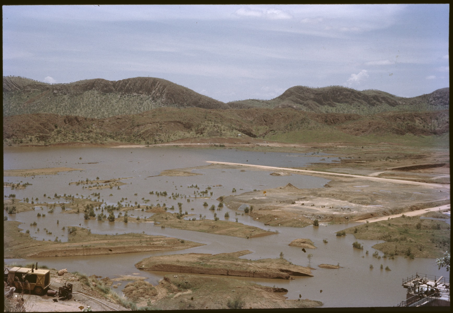 196223PD: Ord River Dam and Lake Argyle under construction, Western Australia, January 1972.