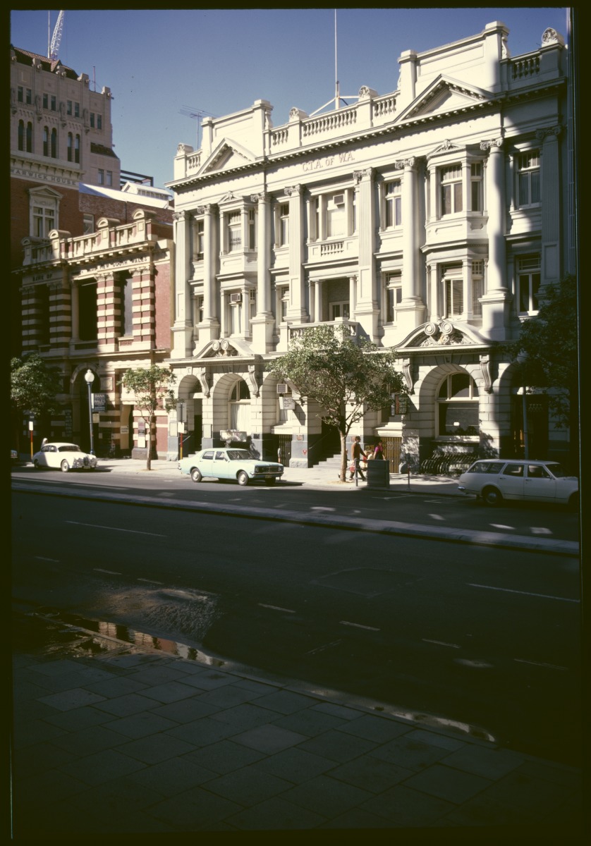 300264PD: Bank of New South Wales and the Commercial Travellers' Association of W.A. buildings, St George's Terrace, Perth, Western Australia, March 1972.