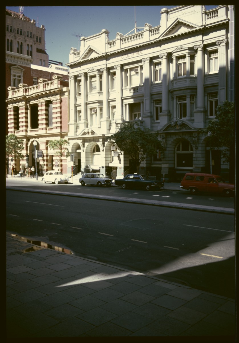 300265PD: Bank of New South Wales and the Commercial Travellers' Association of W.A. buildings, St George's Terrace, Perth, Western Australia, March 1972.