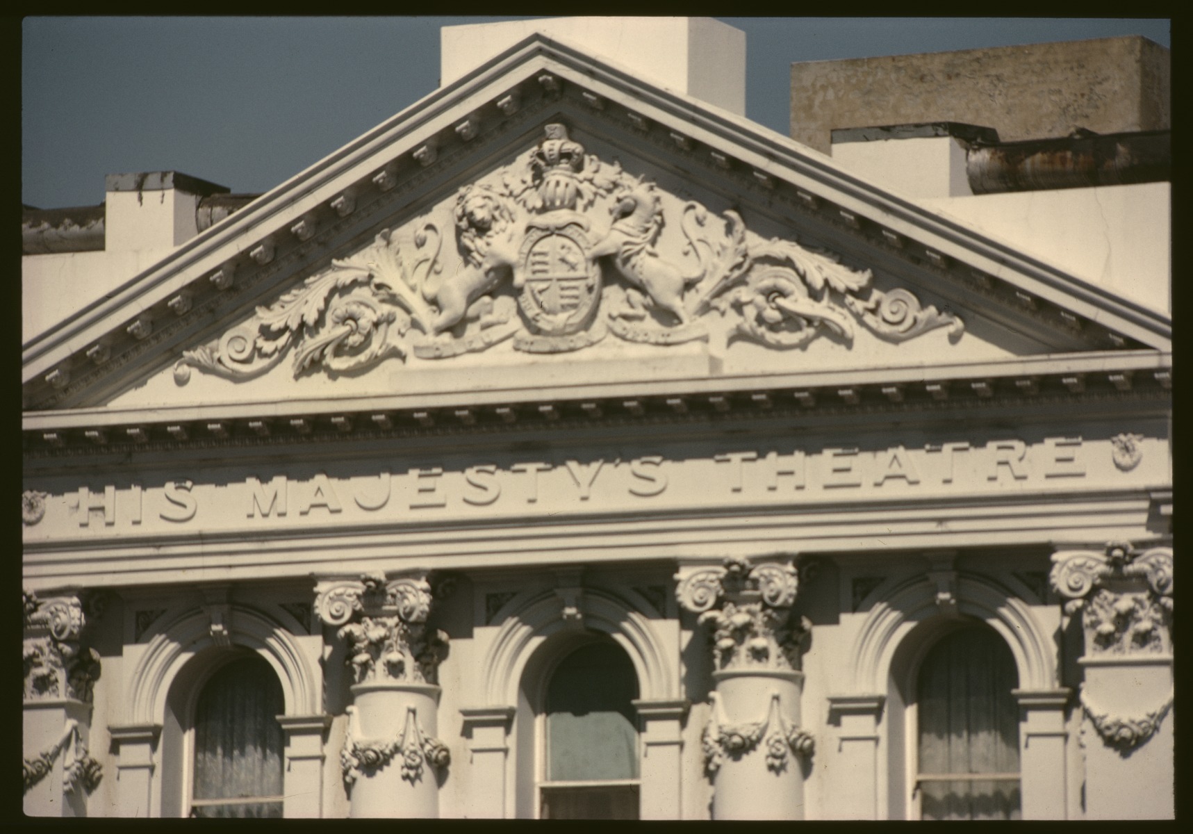 300329PD: Pediment, His Majesty's Theatre, 825-829 Hay Street, Perth, Western Australia, ca. 1972.