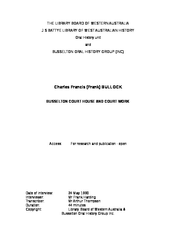 OH4591: Transcript. Interview with Francis (Frank) Bullock in 1990 interviewed by Frank Harding