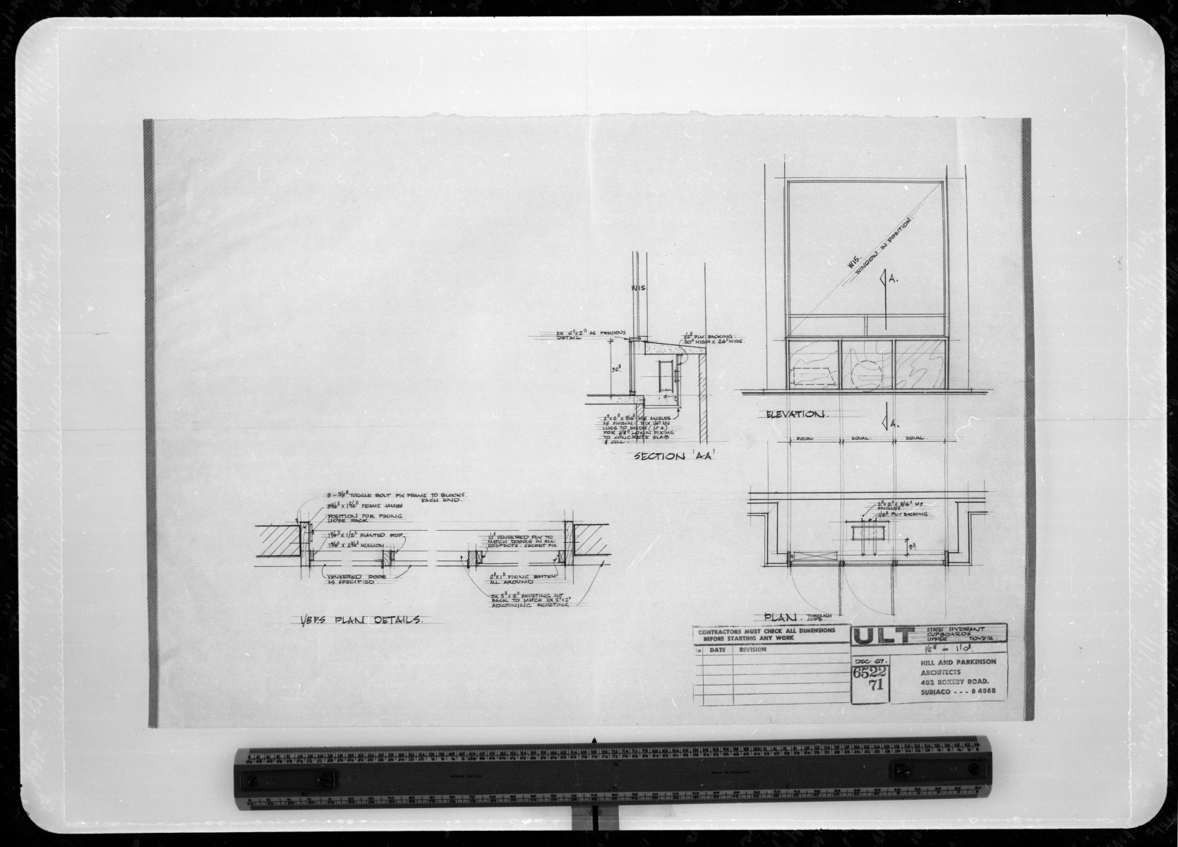 394235PD: Detail plan: fire hydrant, cupboards, upper foyer, December 1967