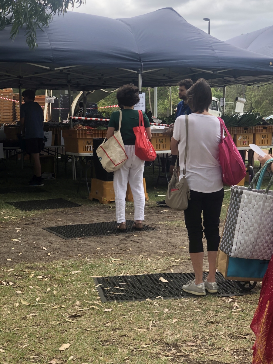 BA3184/1: Social distancing at Farmers Market on Manning, Karawara, 10.57am 28 March 2020
