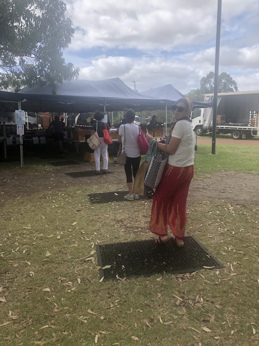 BA3184/2: Social distancing at Farmers Market on Manning, Karawara, 10.57am 28 March 2020