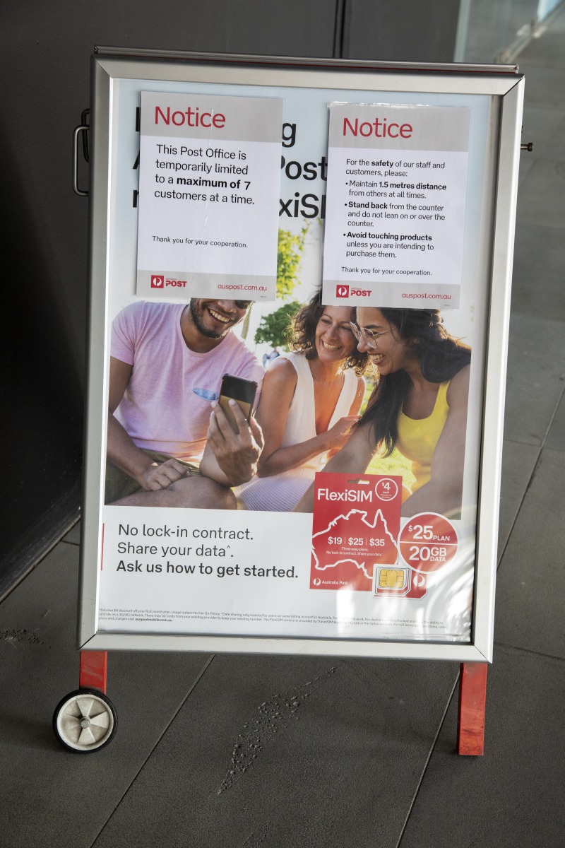 BA2493/2686: The Northbridge Post Office enforces social-distancing and hygiene rules during the COVID-19 pandemic, 30 March 2020