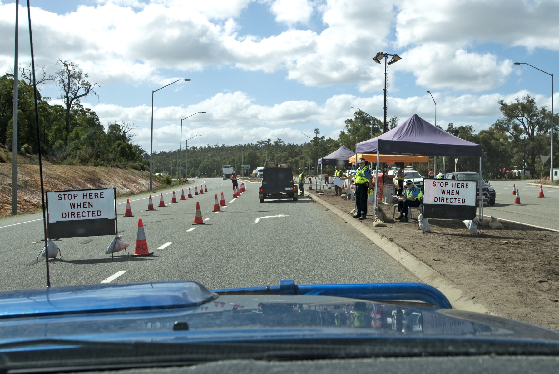 BA2840/1679: COVID-19 regional border checkpoint on Great Eastern Highway on the outskirts of Mundaring, 20 April 2020