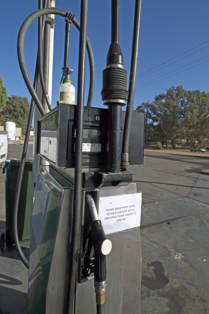 The photographer, Darren Clark, documents his journey through COVID-19 Western Australian regional border restrictions from Karratha to the border at Eucla. He is stopped by police outside Karratha, outside Denham, on the Brand Highway before the Great Northern Highway, Mundaring, outside Coolgardie and Eucla. Signs warning of checkpoints and travel restrictions and advising of new hygiene and social-distancing rules appear along the route. In Tammin and Merredin he is refused service and locals refuse to let him stop so he is forced to travel on to Southern Cross. Social-distancing is enforced at the almost deserted Cocklebiddy Roadhouse and he stays at the Cocklebiddy Motel before crossing the border at Eucla. On 1 April 2020 the Western Australian State Government introduced intrastate travel restriction, limiting movements between the regions of W.A. Travel between regions was restricted, with police checkpoints set up at the borders. Only essential travel was permitted. At some checkpoints, police were assisted by Australian Army and W.A. emergency services personal. Remote communities and some "biosecurity areas" had further travel restrictions due to the lack of medical facilities and number of high risk community members. These travel restrictions were substantially lifted Friday 29 May with the exception of the Kimberley and some vulnerable Aboriginal communities in the Pilbara.