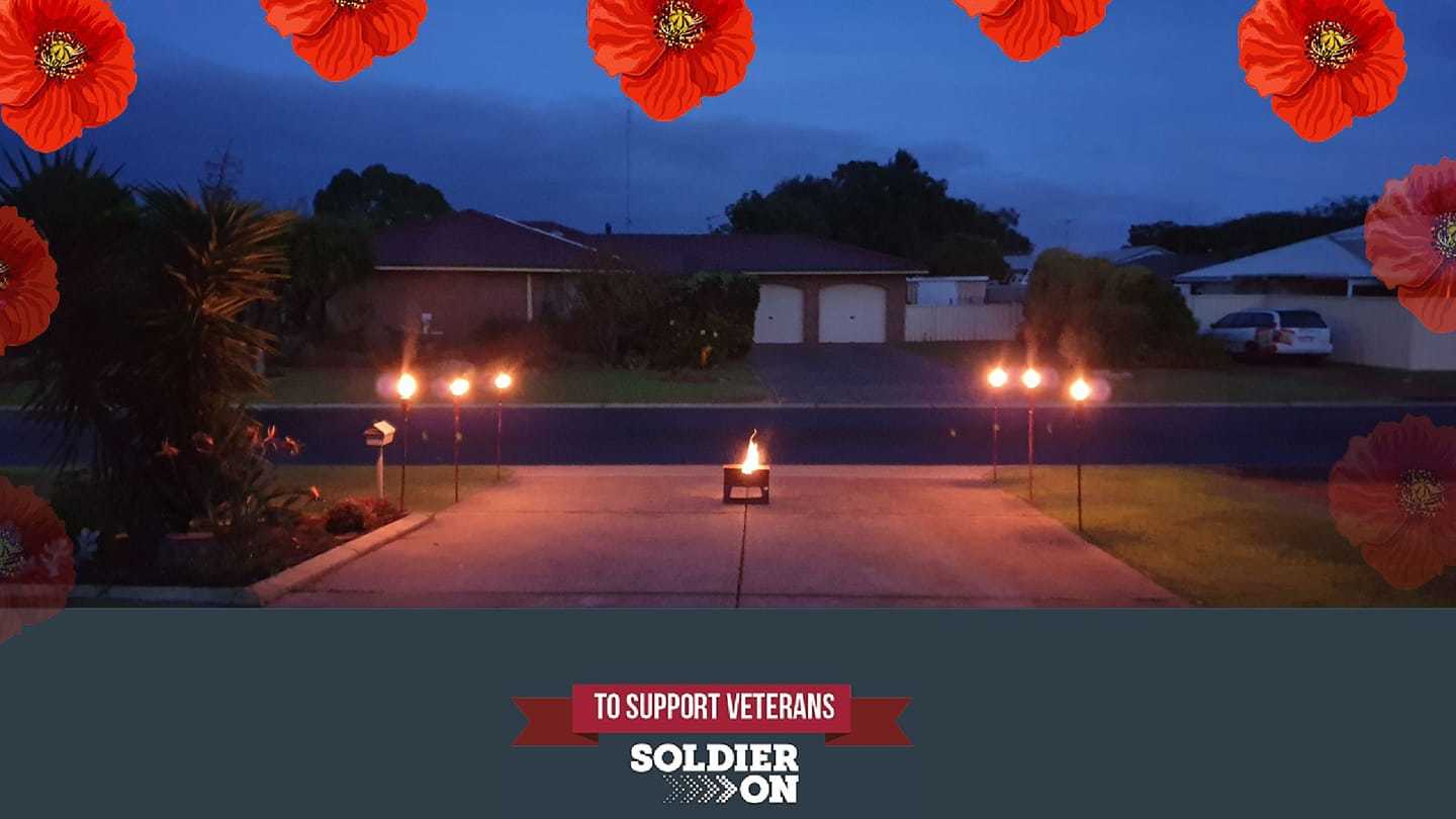 BA3217: Lanterns and fire pit on driveway in Busselton, Lest We Forget, Anzac Day, 25 April 2020.