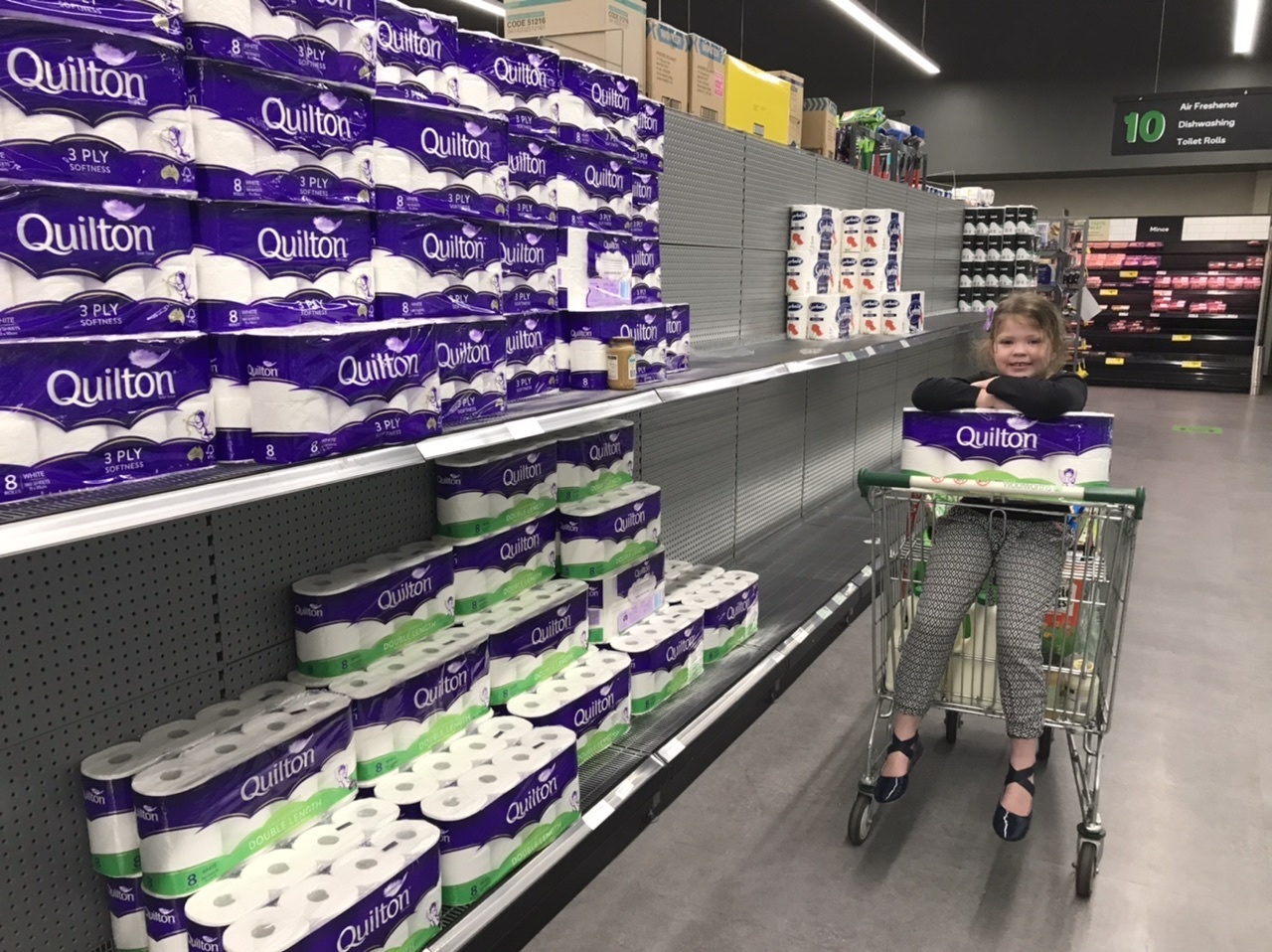 BA3229/2: Abigail Clark excited to find loo roll after the shortages we experienced at the beginning of the Covid-19 pandemic, 20 April 2020.