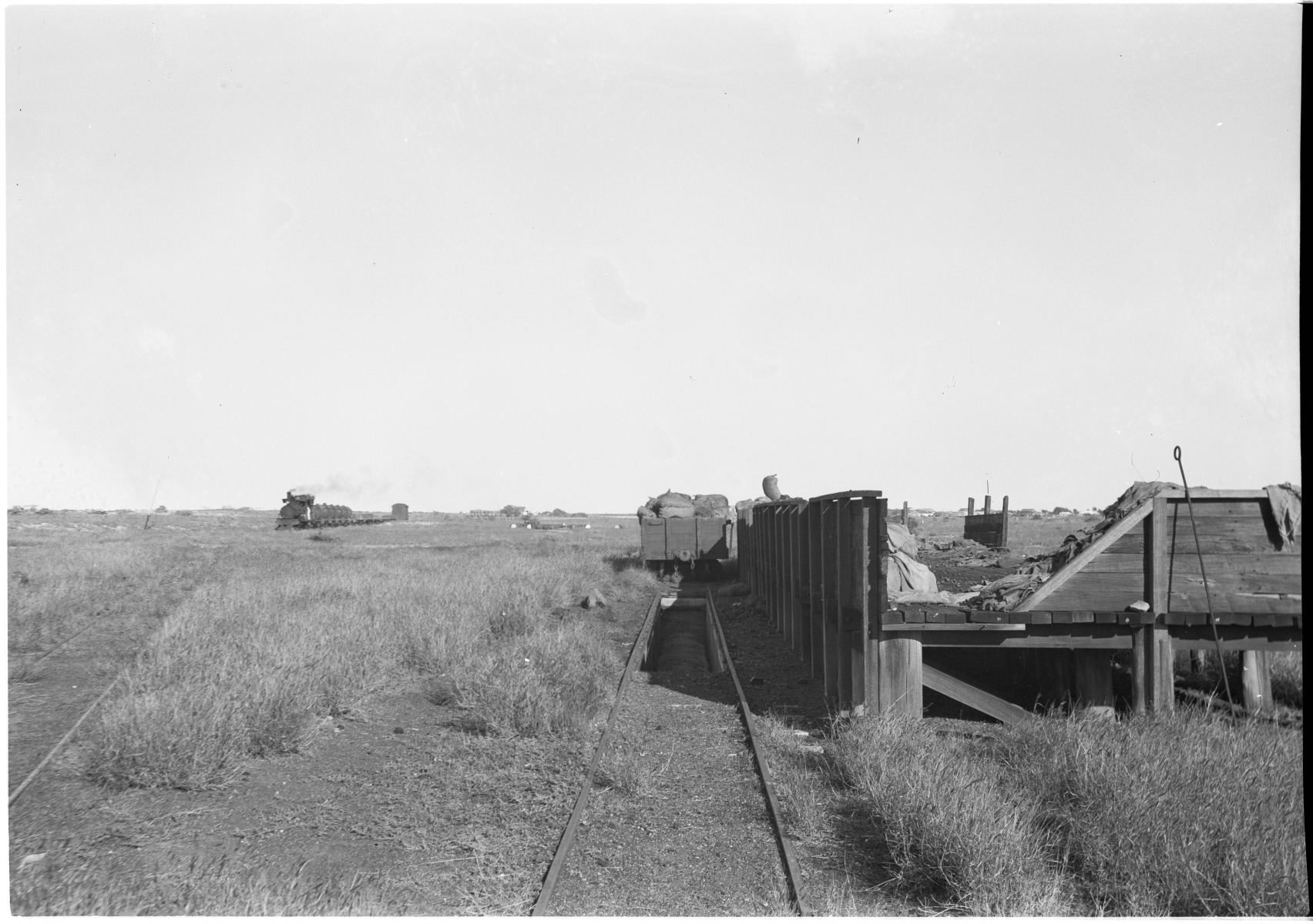 275599PD: Trains and siding at Port Hedland, Western Australia, 1952.