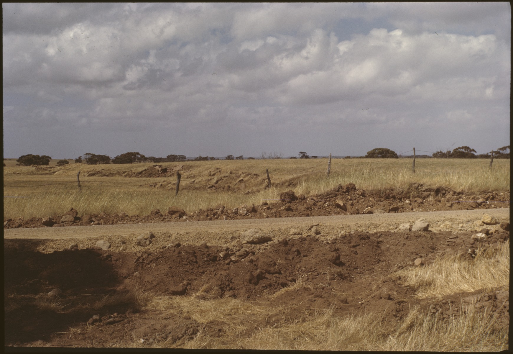 197057PD: Displaced fence by the York to Meckering Road after the Meckering earthquake, Western Australia, 1968.