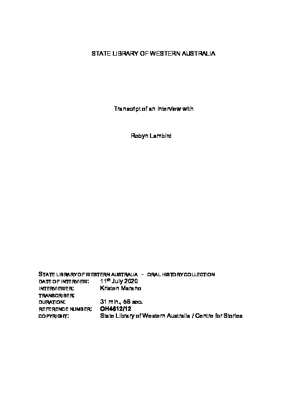 OH4612/12: Transcript. Interview with Robyn Lambird in 2020 by Kristen Marano.