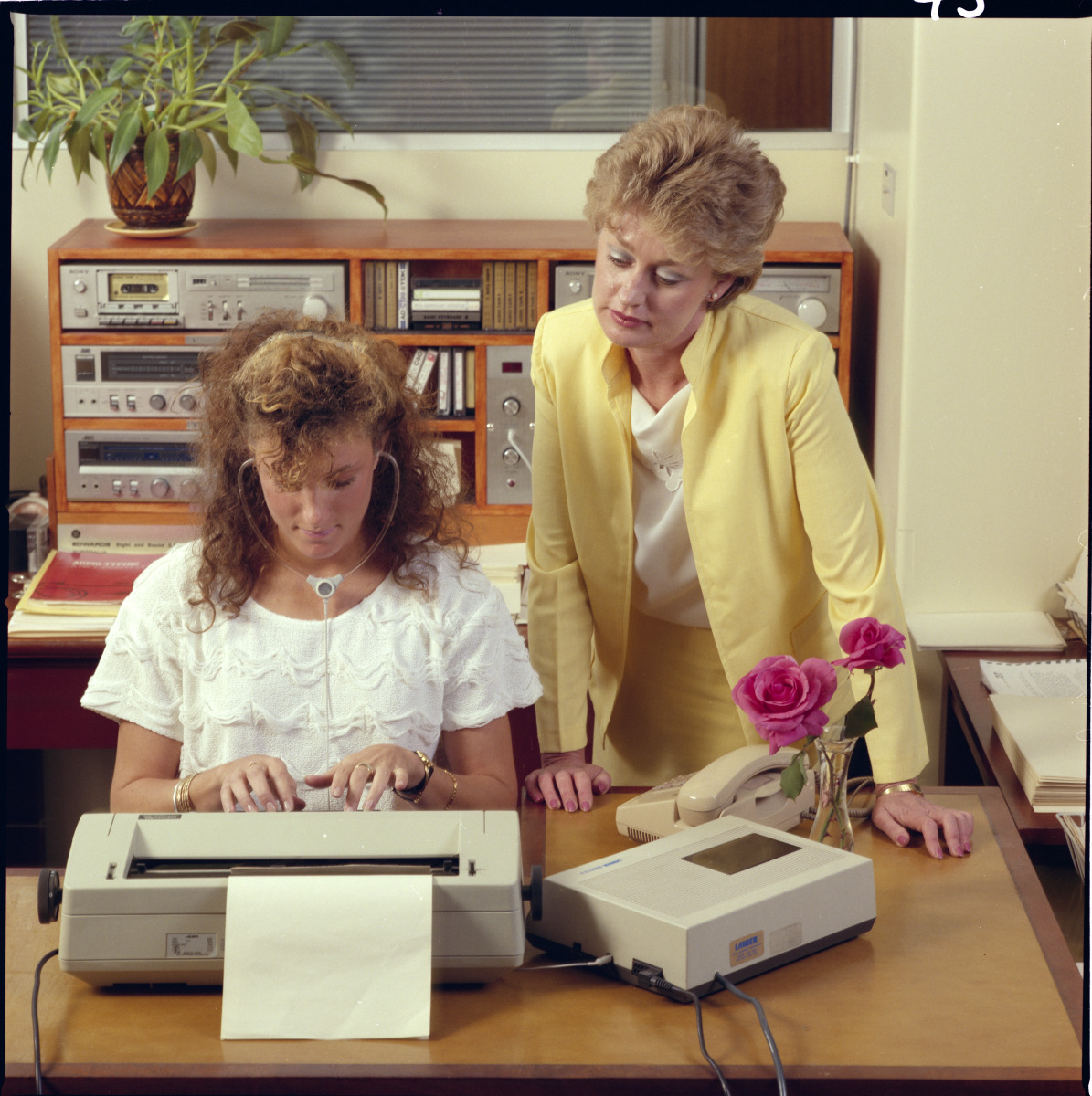 389961PD: Learning how to use a dictaphone at Australian Business College, 111 St Georges Terrace, Perth, 9 October 1985