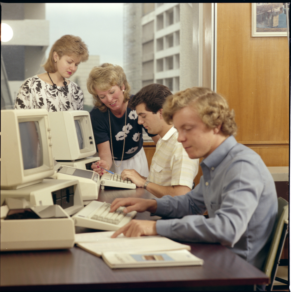 389963PD: Learning how to use a word processor at Australian Business College, 111 St Georges Terrace, Perth, 9 October 1985