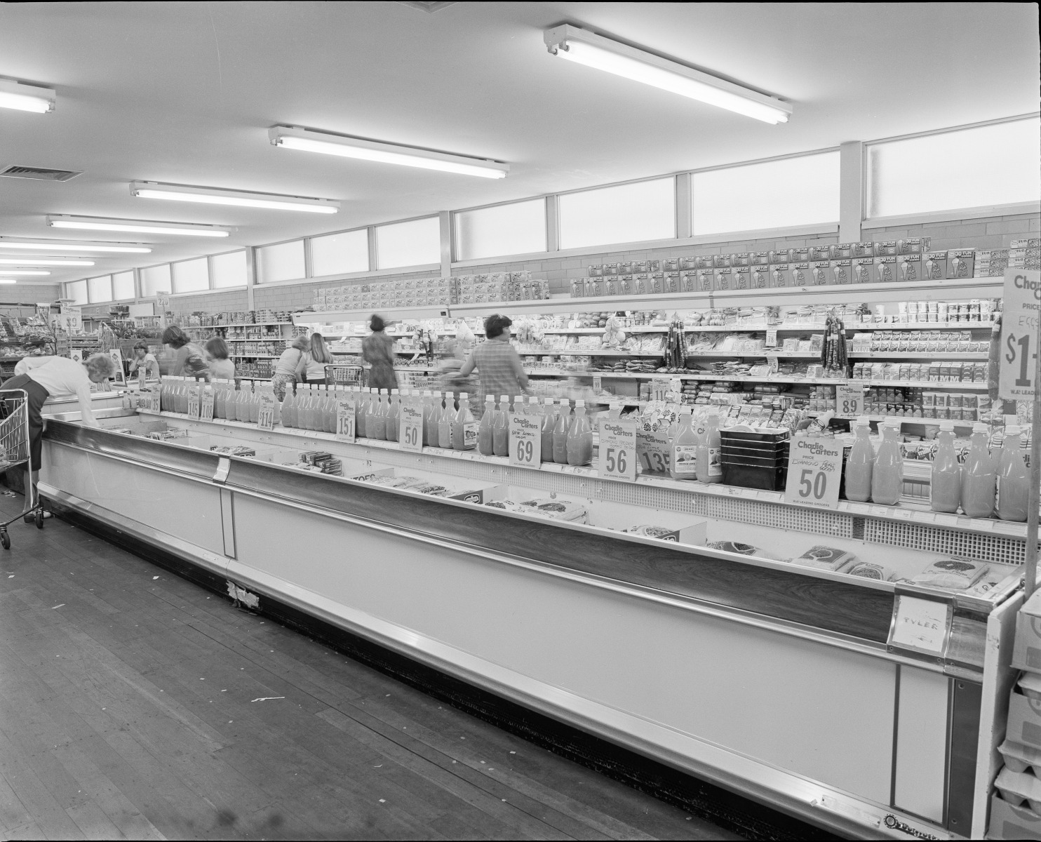277052PD: Fridges and freezers in Charlie Carters supermarket, Warwick, December 1979
