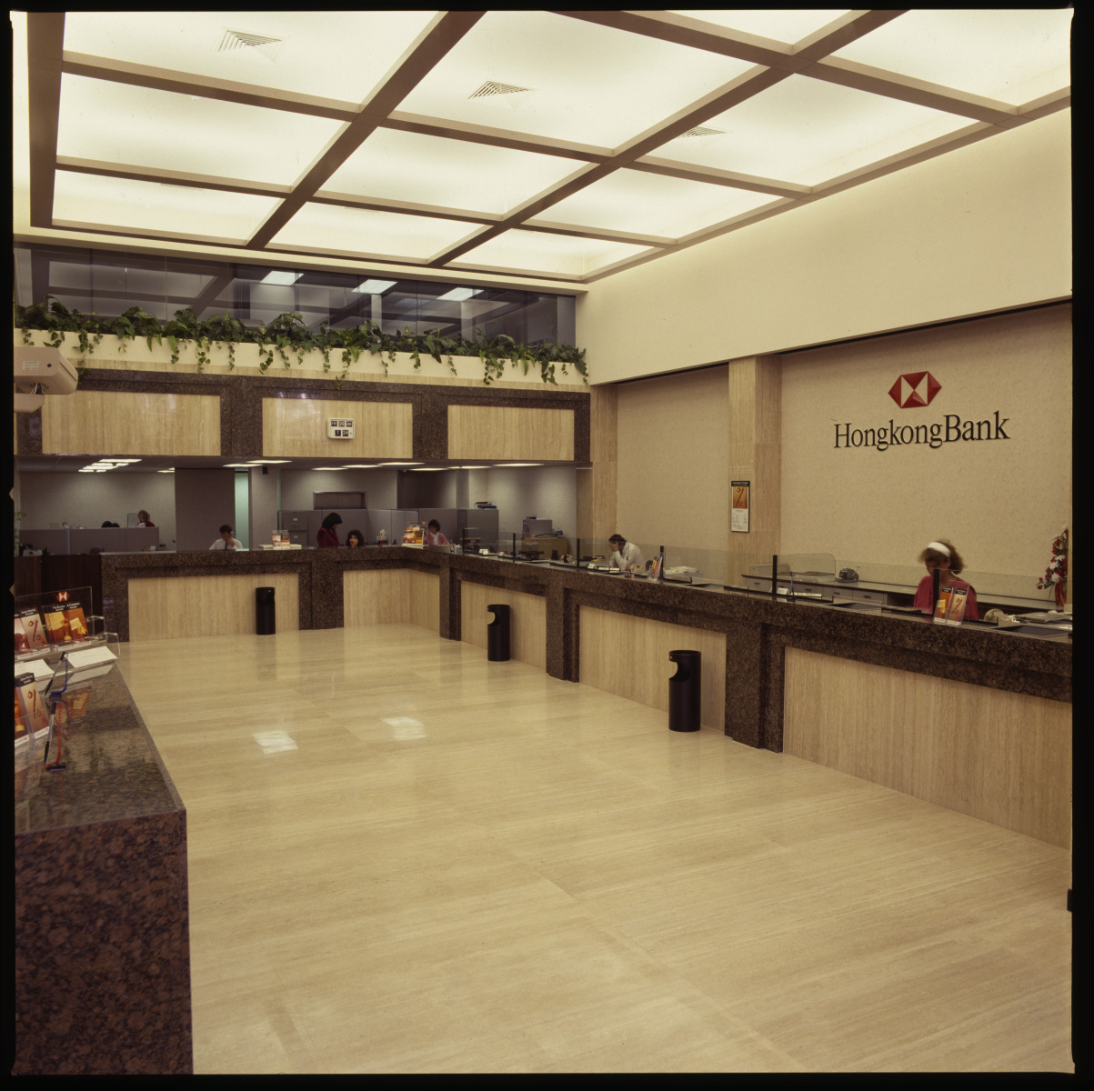369238PD: Tellers at work in the Hongkong Bank, 41 St Georges Terrace, Perth, 29 August 1986
