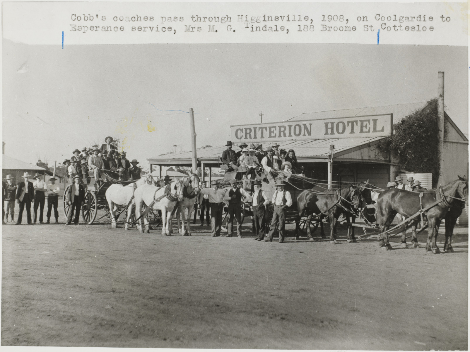 4689B/102: Stage coaches prepare to leave Norseman for Coolgardie, 1908. (Caption incorrectly names the place Higginsville)