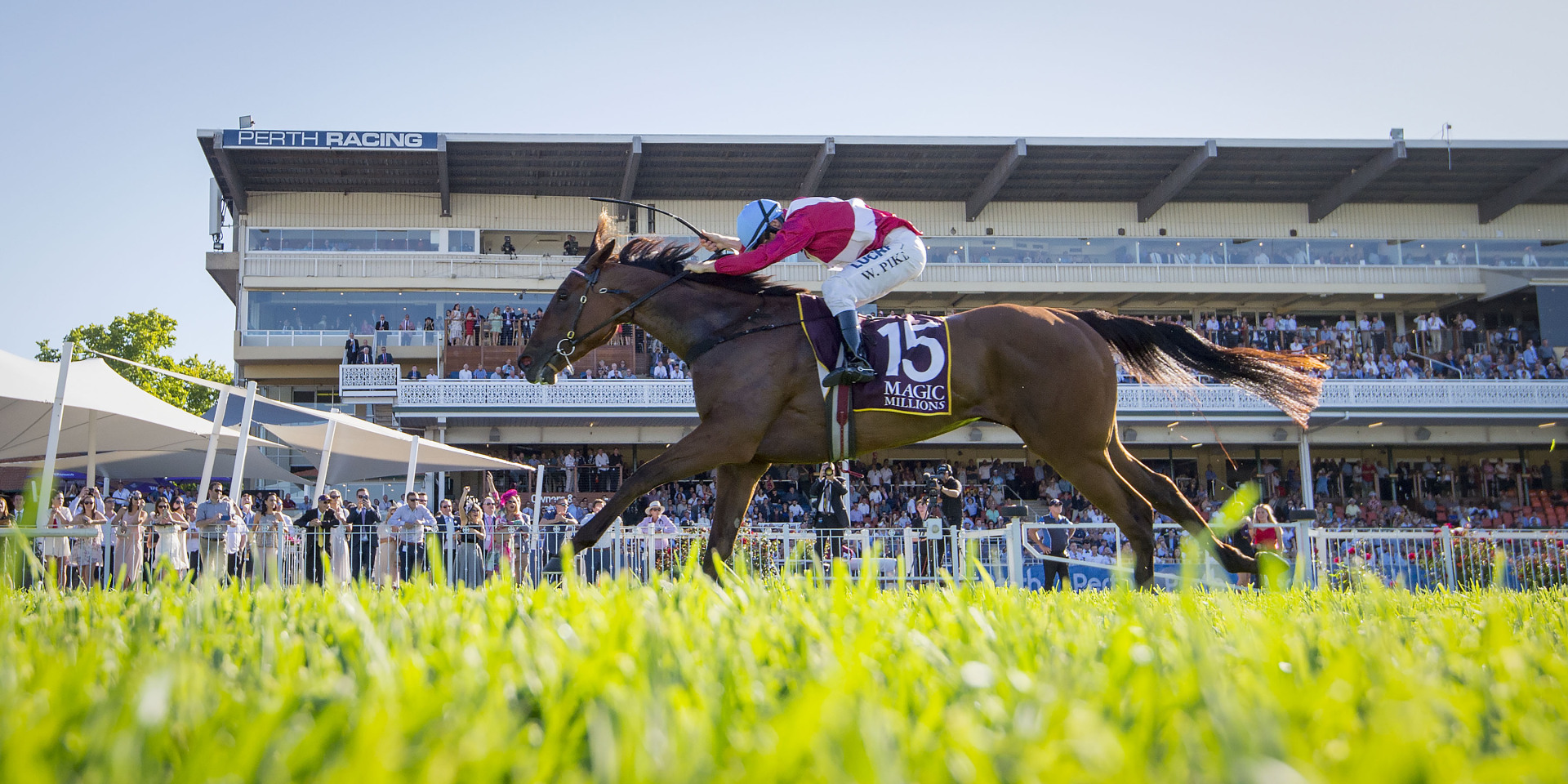 BA3428/5: Arcadia Queen ridden by W. Pike wins the Kingston Town Classic at Ascot, 8 December 2018