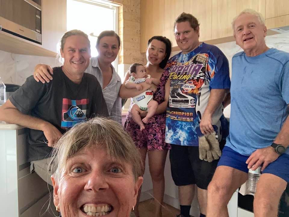 BA3363/28: Belinda Peck (foreground), Patrick Peck (right) and other survivors of Cyclone Seroja in Kalbarri, 12 April 2021