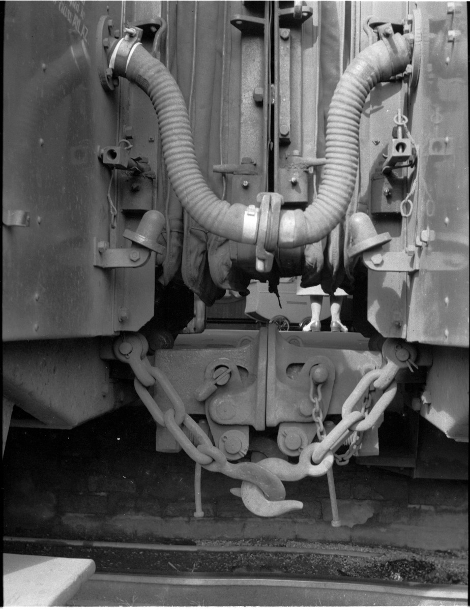 383062PD: Close-coupled AH class carriages on The Westland Express at Kalgoorlie station, Kalgoorlie, May 1951.