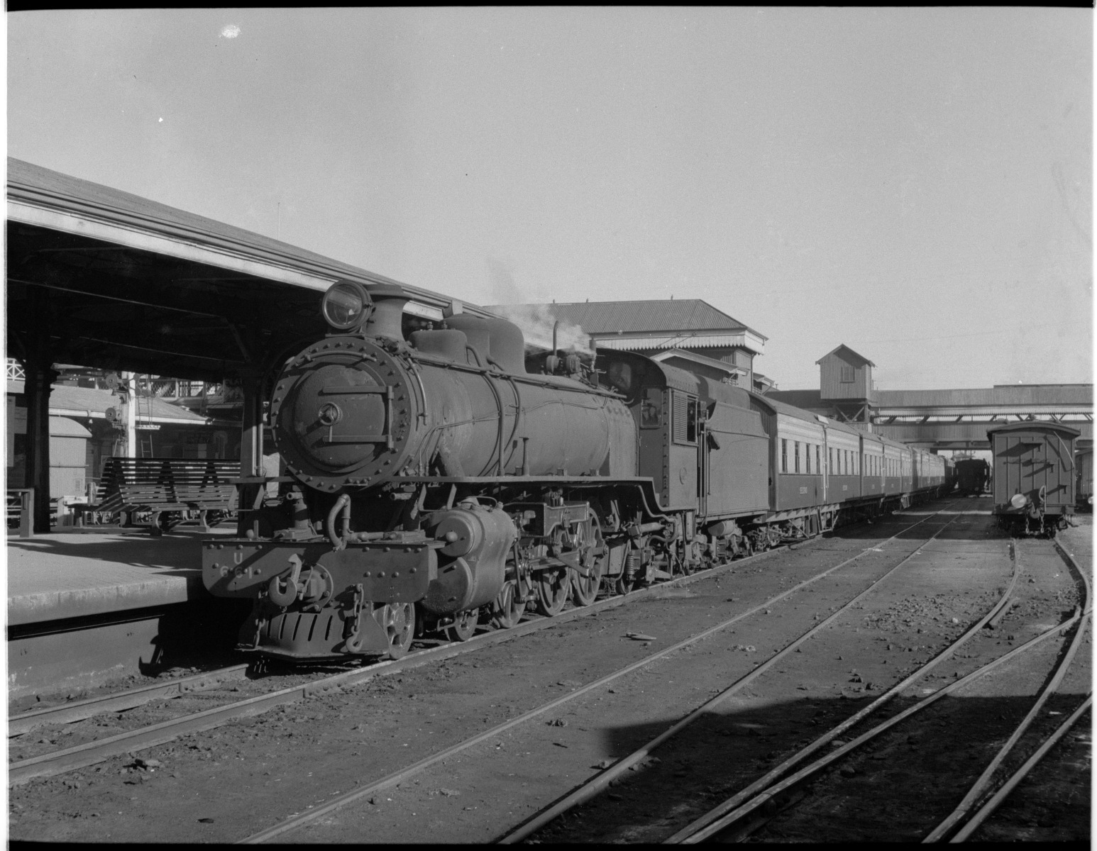 383040PD: WAGR U class No.661 on Down Australind Express, Perth Railway Station, May 1951.