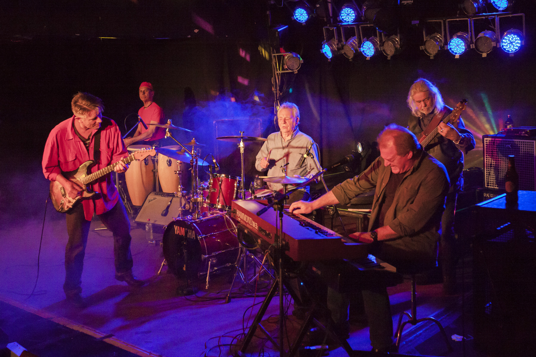 BA3388/150: The Perth Blues Club House Band and guests perform at the Charles Hotel, North Perth, 9 August 2016. Dave Brewer, guitarist at left, Bob Patient on keyboard