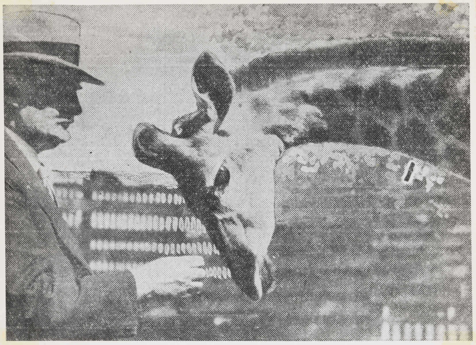 BA1101/10/233: Mighty, the cow giraffe at the Zoo, mourns her dead mate. Even Colonel Le Soeuf failed to coax her out of despondency yesterday, 8 April 1930