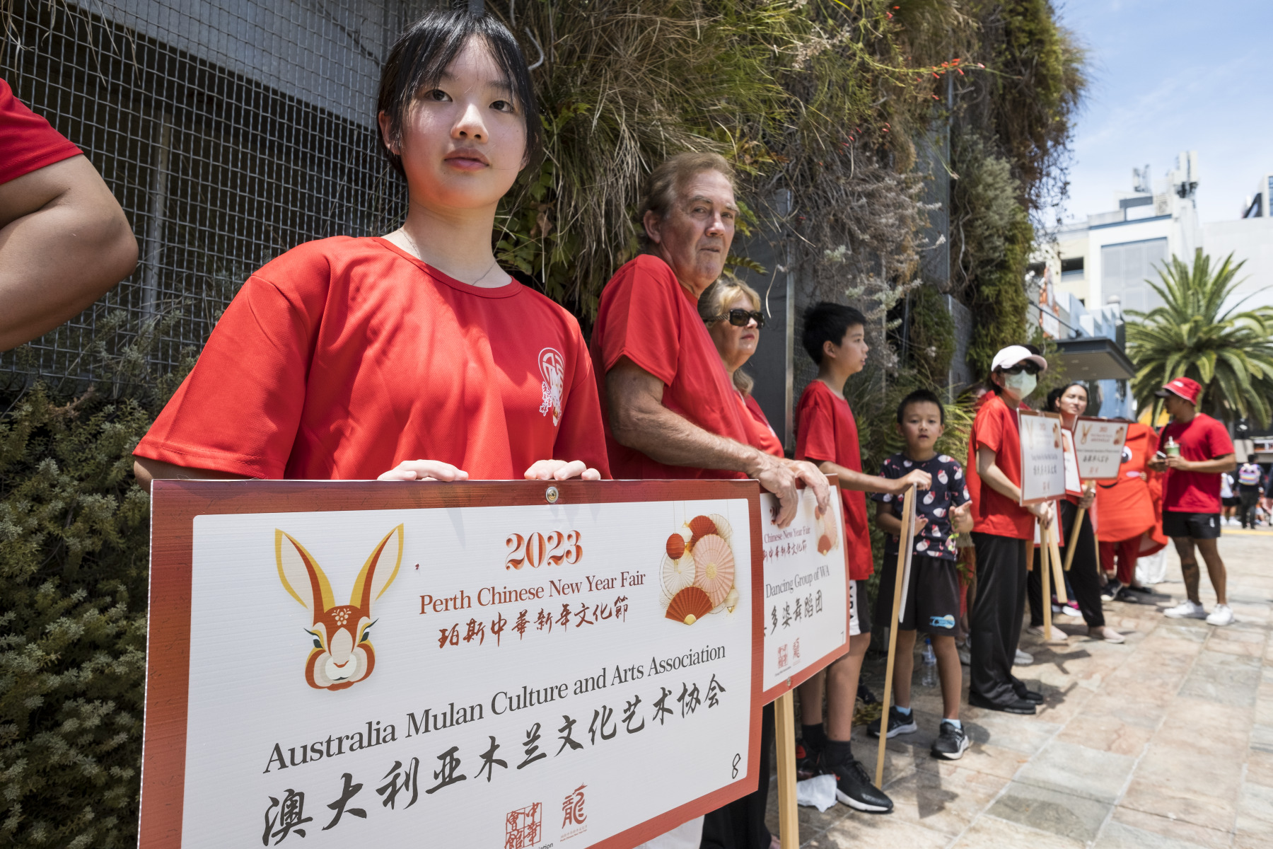 BA3370/118 : Performers waiting in the shade during official opening of Chinese New Year parade