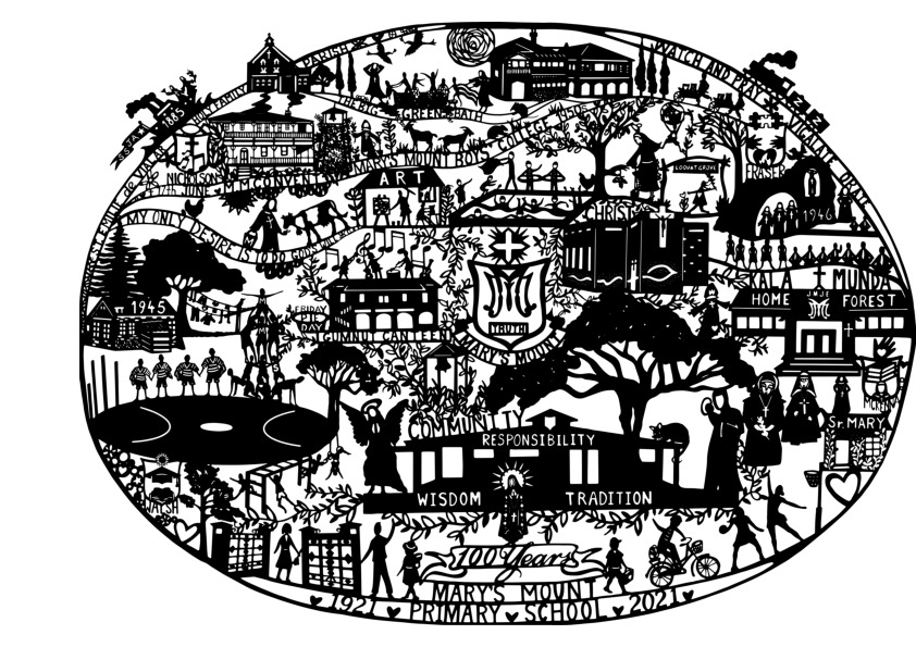 ART0240/8: Giclee print. Mary's Mount Primary School 100th Anniversary 2021 by Anne Gee.