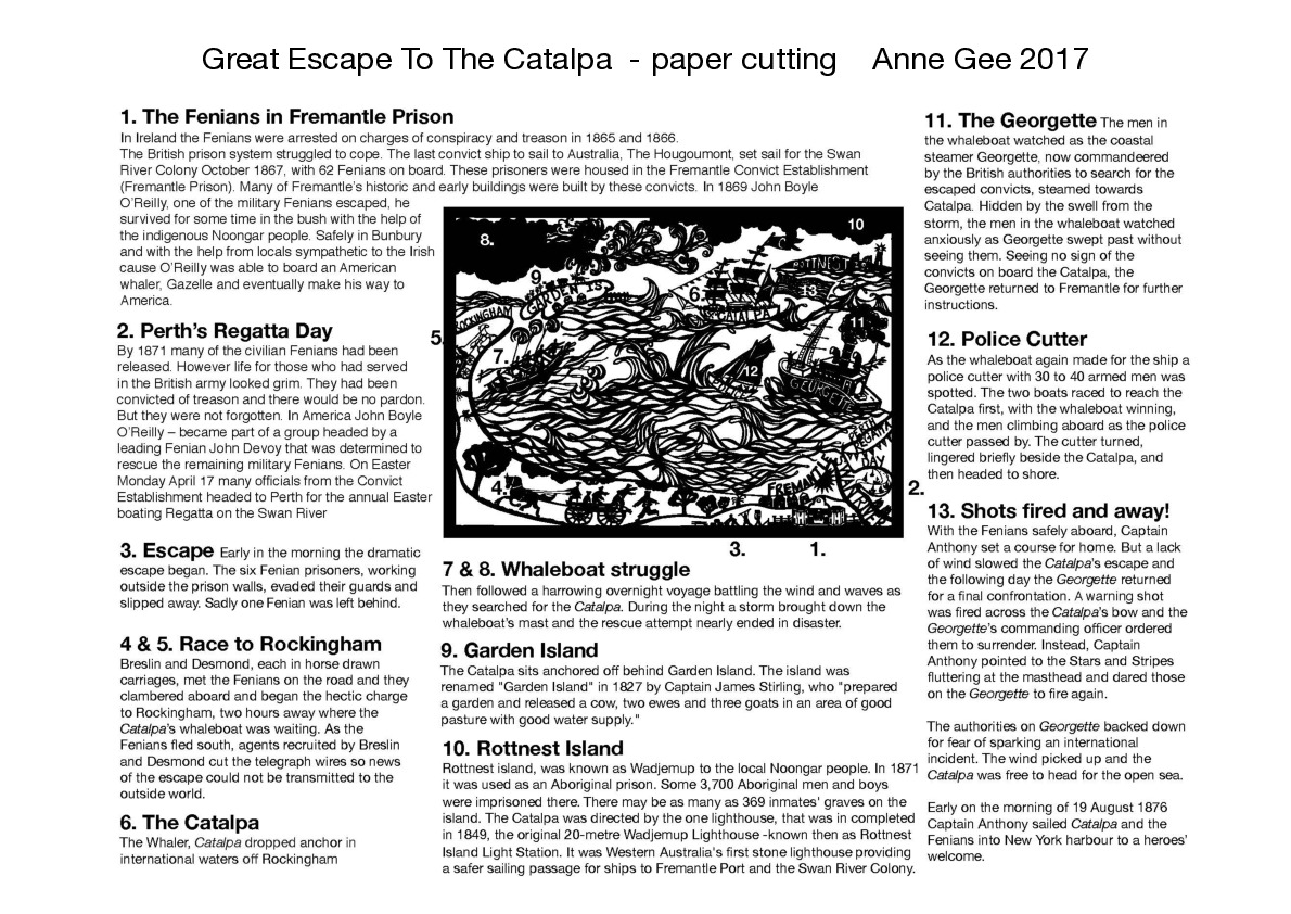 ART0240: Information sheet.The Great Escape to The Catalpa: story behind the artwork by Anne Gee, 2017.