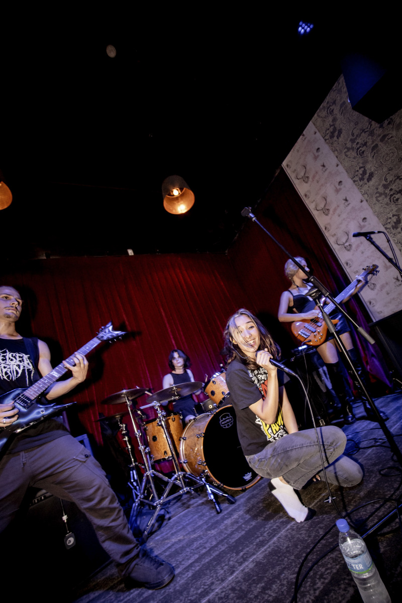 BA3611/25: Mishel Rankin (centre) performs with Dining With Sinners at the 459 Bar, North Perth, 11 February 2023