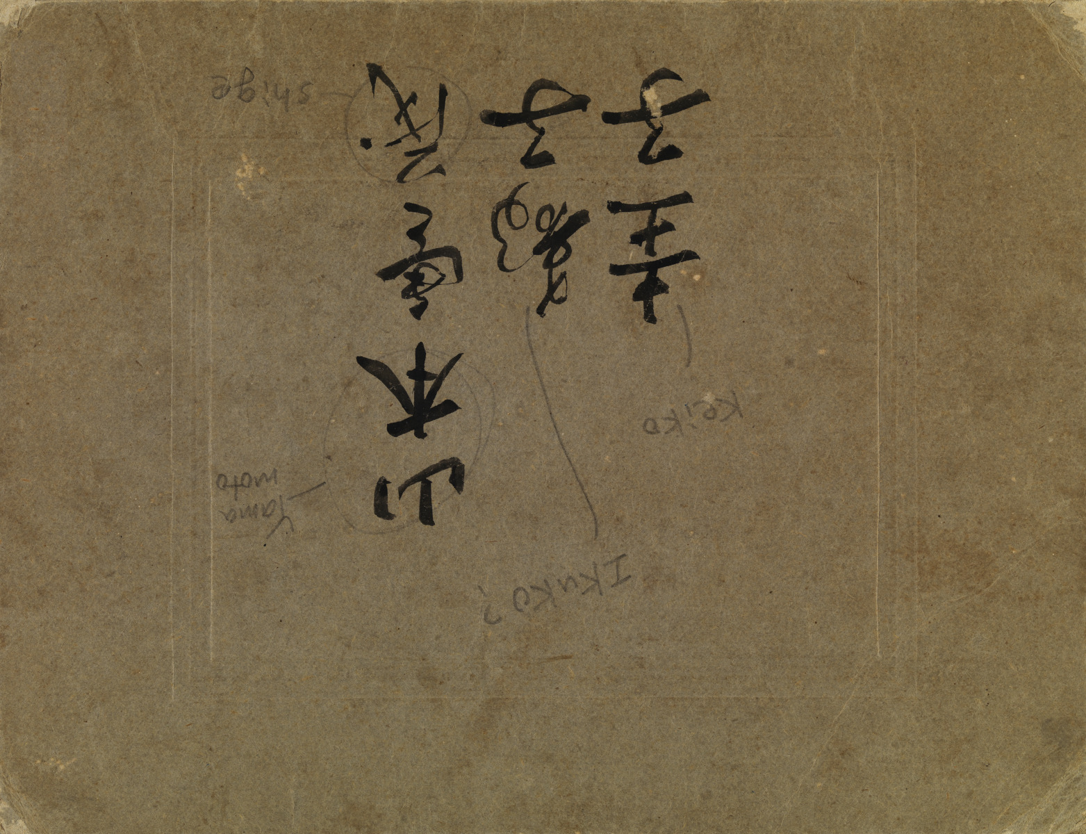 ACC 10824AD/65: Keiko & Ikuko? Yamamoto in traditional dress, sitting in a garden with a caged cockatoo.Verso.