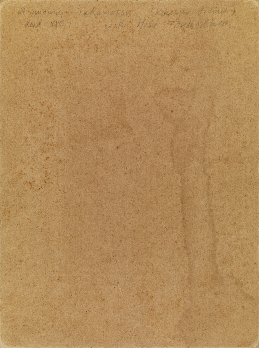 ACC 10824AD/71: Toyosaburo Mise (sitting) and son Kamesaburo Mise, Broome. Verso.