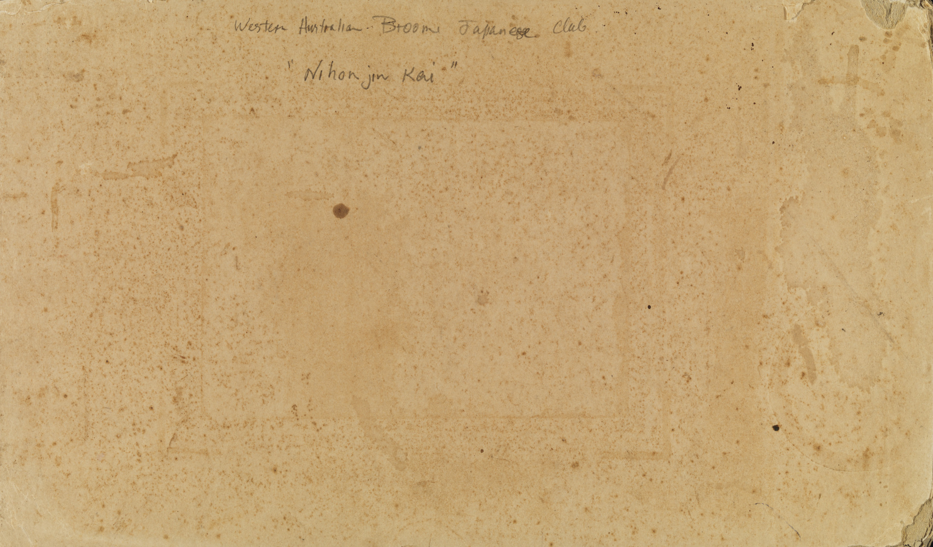 ACC 10824AD/51: Western Australian Broome Japanese Club (Nihon jin Kai) Umeda Nobutaro seated centre front. Broome, 1926. Verso.