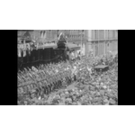 A compilation of film. May Day Procession in Perth 1929 shows trade union banners and floats and crowds watching. Motor cycle scramble Buckland Hill Western Australia 1929 shows motor cycle racing spectators and cars at Buckland Hill. Reclamation. Dredging near the causeway. Swan River. Perth. Western Australia 1929 shows dredging and reclamation work on the Swan River. Peter Pan received a very warm welcome upon his arrival in Perth 1929 (shows the newly installed Peter Pan statue in Queens Gardens). Churchmans Brook. Reservoir. Western Australia (shows Churchmans Brook). Untitled footage showing a ferry on the Swan River, Perth street scenes, trams, trucks, cars, a procession (section in reverse), a military ceremony with gun salute, Sir James Mitchell at Perth Boys School watching a callisthenics display.