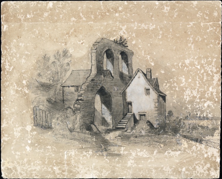 ACC 563AD/5A: Drawing of partially ruined building. Signed on reverse: C.H. Roe.