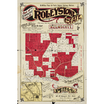Shows roads (named) and lots (with number, size and boundary measurements), water courses, springs, swamps and quarry reserve on Estate. Lots coloured red indicate sold, and owner's names and houses are shown. Notes on Estate and terms of sale. Land owners bordering the Estate and some houses are noted.