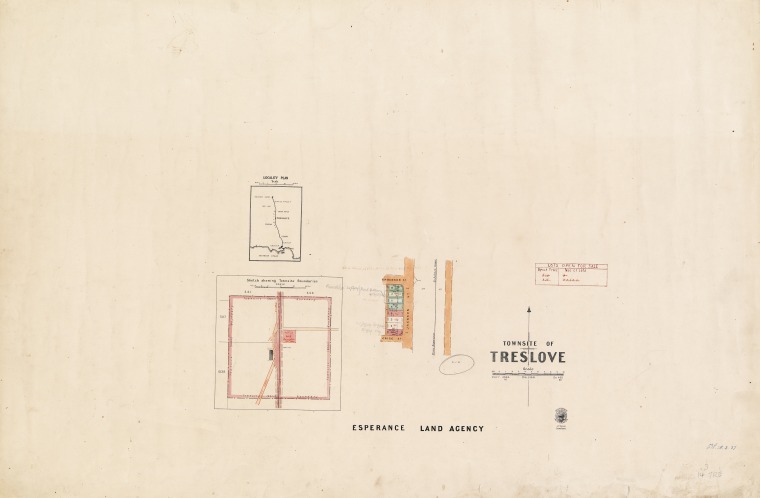 "21/1/27" Cadastral map showing land use. Includes locality plan and sketch showing townsite boundaries. Includes ms. additions of table of lots open for sale with upset prices and details of lot owners. Part of collection: Townsite maps, Western Australia.