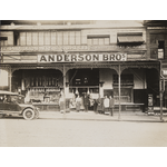 Carcasses hanging in the front window, staff pose at the doorway. The photography studio of Webb & Webb is above the butcher shop with its entrance in Hay Street. Anderson Bros moved into these premises in the middle of 1917.