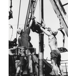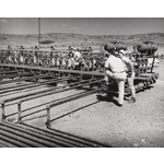 BA875/55: Roughnecks, WAPET's Onslow No.1,17 1/2 miles south-west of Onslow -- BA875/56: Roughnecks at work on oil rig at Barrow Island -- BA875/57: Production manifolds at a separator station on Barrow Island.