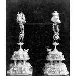 004853D: Jack Hallam and Miss Dorothy Brown who had the first radio wedding in Western Australia -- 004854D: Wedding cake.