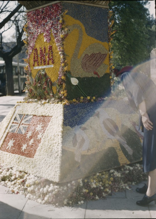 231592PD: Flower Day decorations at the Forrest Memorial, Perth, September 1953