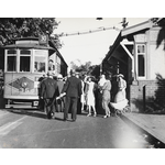 Dated by the women's clothing which must be late 1930s. The last tram on the Claremont route ran from Perth at 11:50 pm on 11 June 1938. The next day the route was taken over by trolley buses. (see The Sunday Times 12 June 1938, p.1) Also shows baby's cane pram.