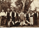 BA1493/3: Group of men and young boy in front of some trees. Richard Fellows (Effie's father) centre.