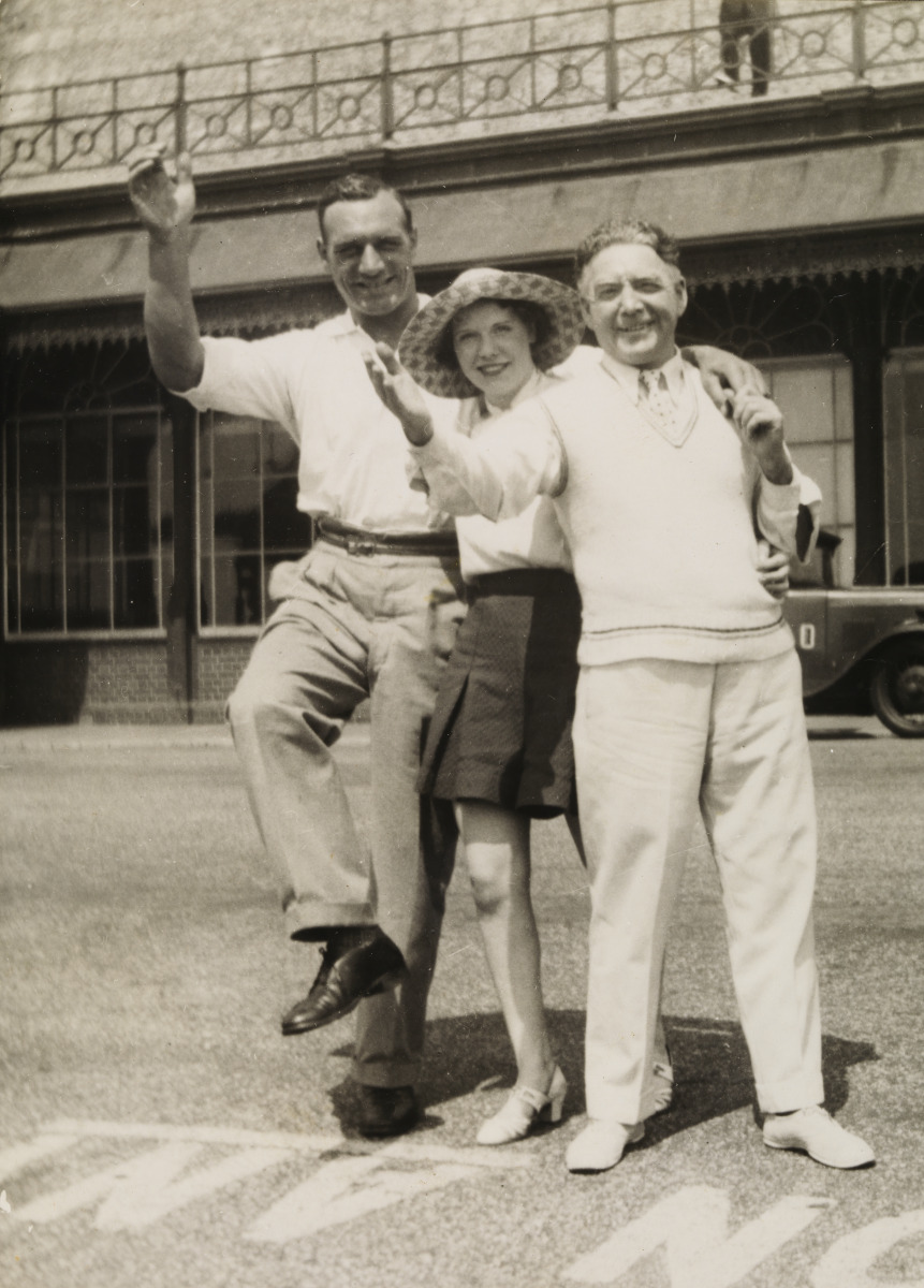 BA1493/20: Effie Fellows in shorts with her husband Sam Chapman (right) and unknown man on left.