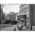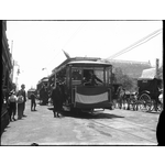 009530PD: Trams decorated with flags leave the carbarn in High St, Fremantle for the opening of the Fremantle Municipal Tramways, 30 October 1905