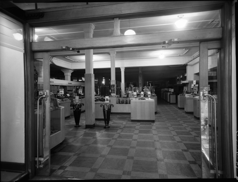 234538PD: Scarves, umbrellas section, 1950