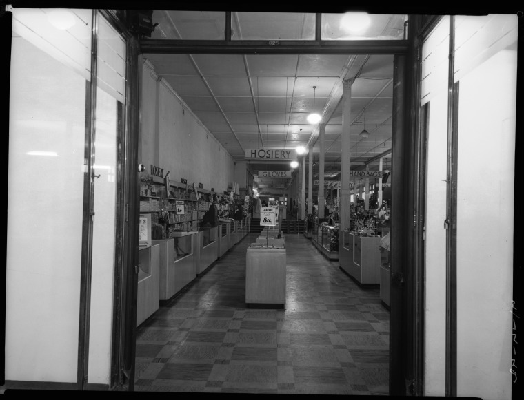 234540PD: Doorway to hosiery and gloves, 1950
