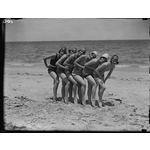 Performers from one of the musical comedy excerpts staged in the interval between the showing of silent feature films in the 1920s. Identified as the Kelly School of Dancing which provided dancing entertainments in cinemas and theatres in Perth and Fremantle during the late 1920s and the 1930s. The woman in the white bathing cap standing is Lillian Dora Kitt Kelly (nee Nehrenheim) and the women doing handstands are her daughers Amy and Sylvia. (Amy was the mother of Colyn Healy who supplied this information, 2014)