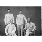066204PD: Four soldiers. Standing left identified as William Alfred Telford killed in action at Gallipoli 28 June 1915, 1914-1915